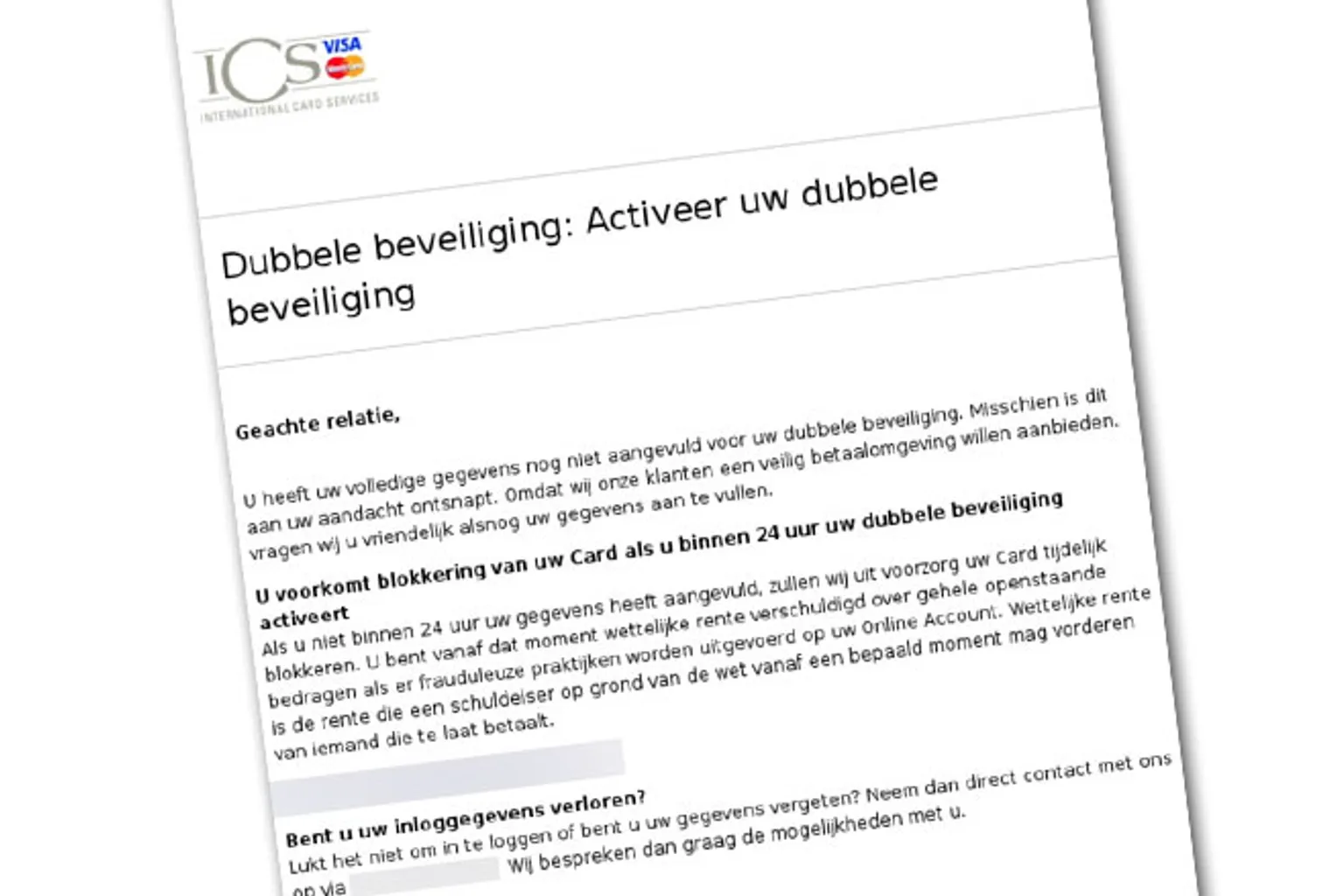 'Activeer uw dubbele beveiliging' bij ICS? Let op: vals bericht!