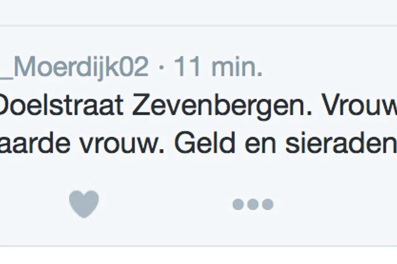 Een bejaarde vrouw uit Zevenbergen werd onlangs het slachtoffer van een vrouw die zich voordeed als zorgmedewerkster. Dit meldt een wijkagent uit Moerdijk op Twitter.