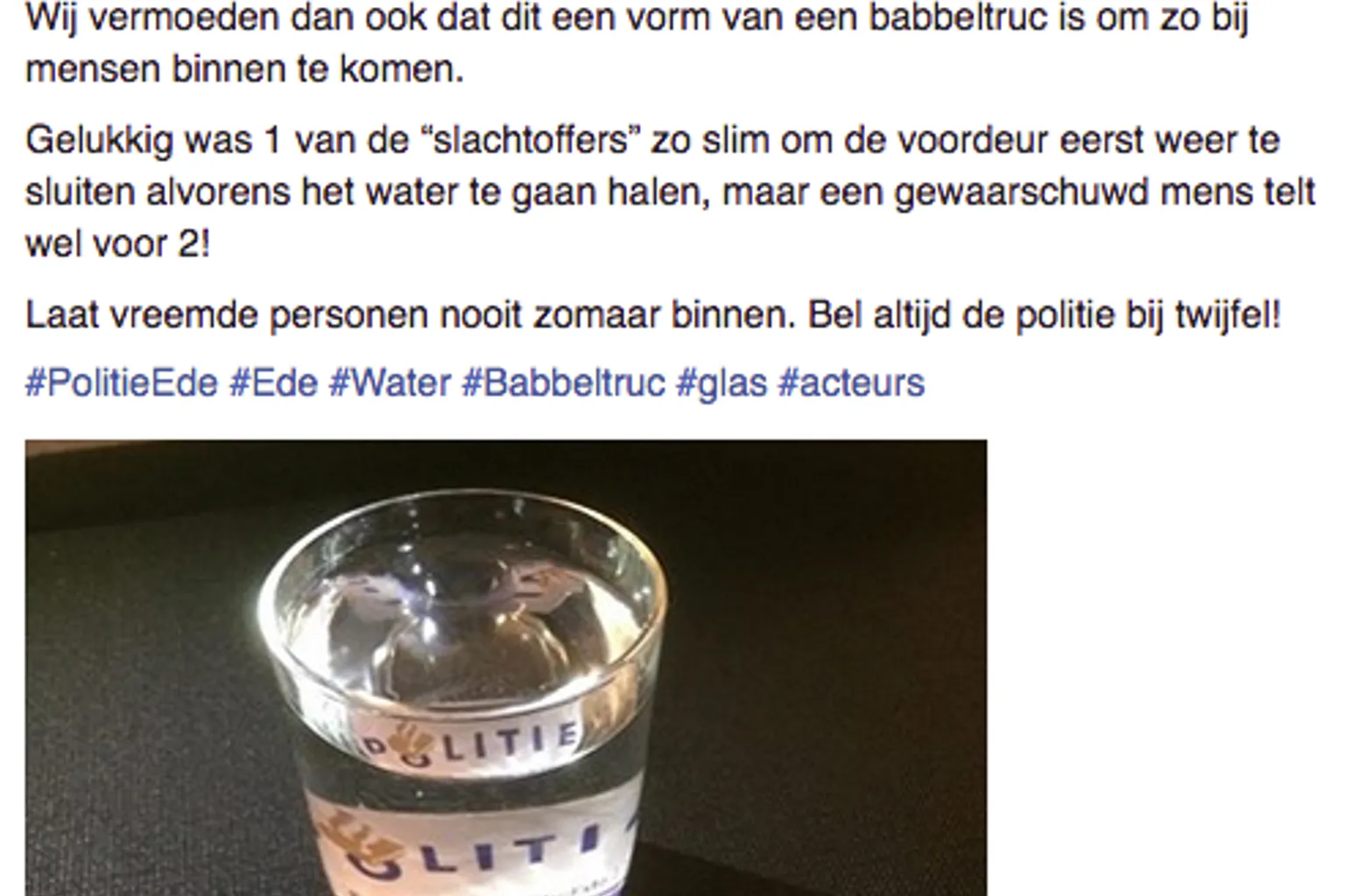 De politie Ede waarschuwt voor een nieuwe babbeltruc. Meerdere mensen werden hiervan het slachtoffer.