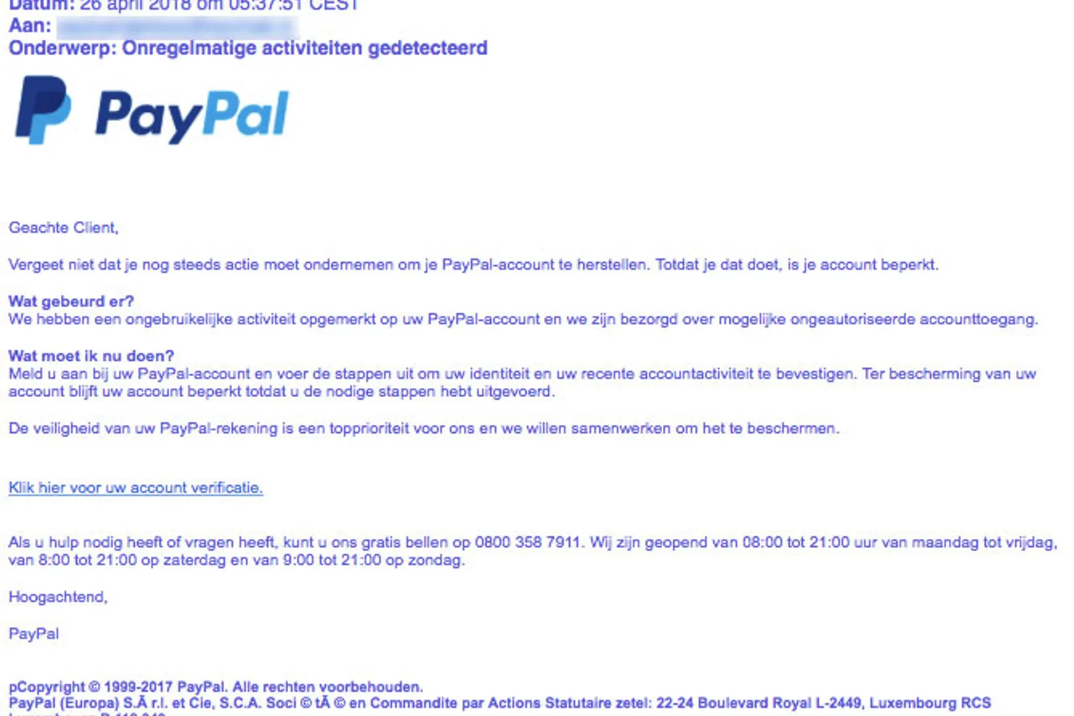 Opgelicht?! raadt aan het bericht direct te verwijderen. Zo voorkom je dat er frauduleuze praktijken met je gegevens zullen gebeuren. Heb je een dergelijke e-mail ontvangen en twijfel je aan de echtheid? Neem dan een kijkje op de pagina over phishing op de officiële website van PayPal.