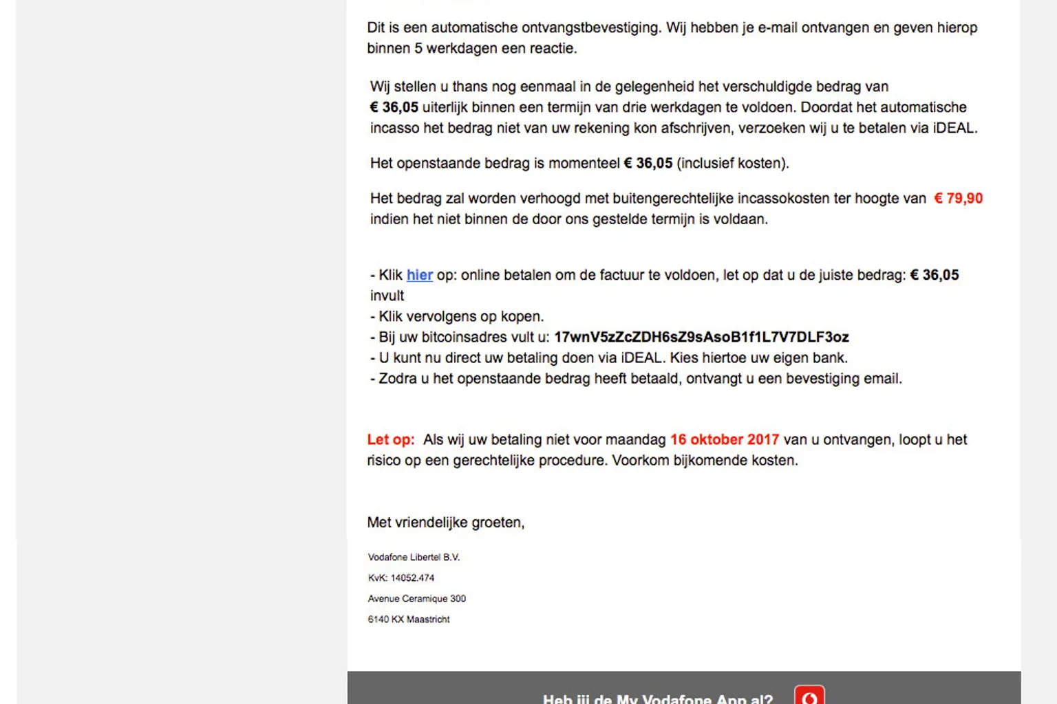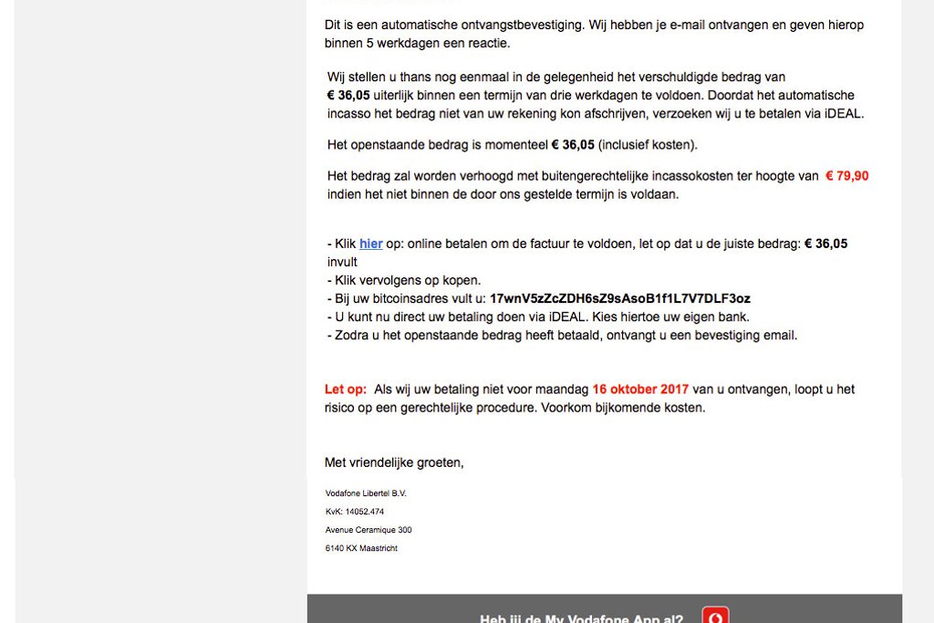 'Betalingstermijn'-mail 'Vodafone' blijft in omloop
