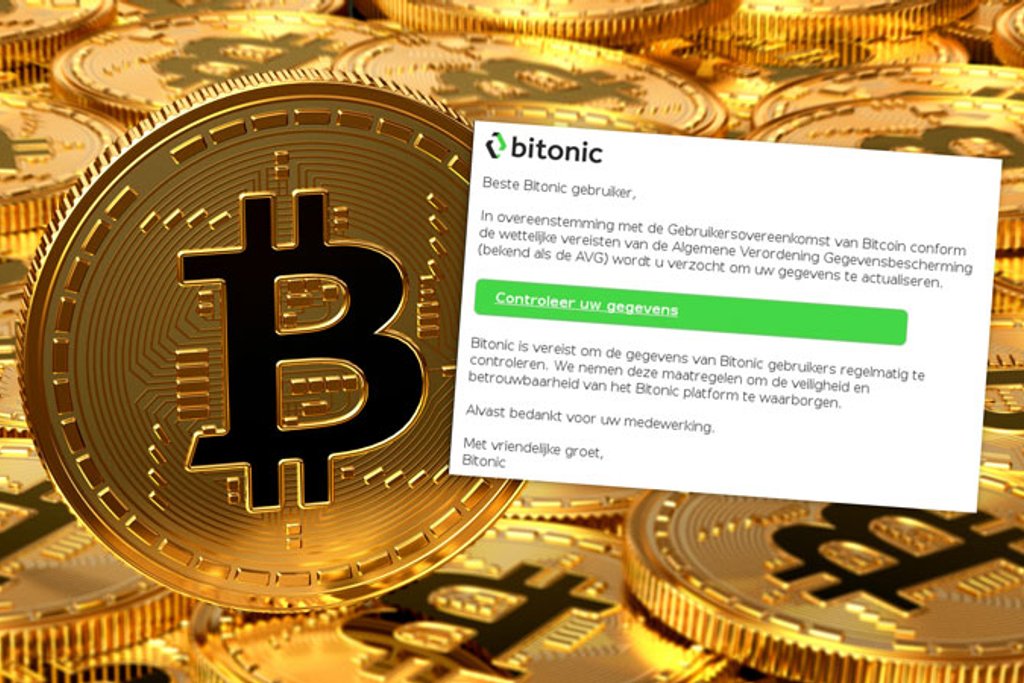 Online oplichters doen zich voor als het Nederlandse bitcoinbedrijf Bitonic en verzoeken je om je gegevens te actualiseren via de valse link in het bericht.
