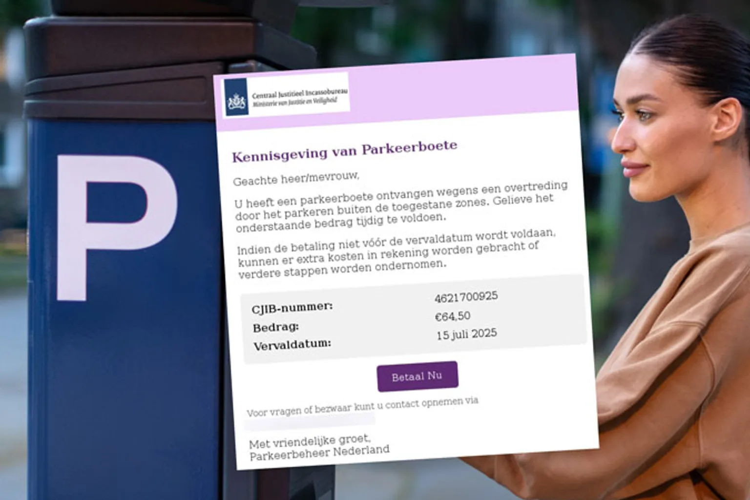 CJIB-mail: ‘Betaal jouw parkeerboete van €64,50 vóór 15 juli’ is nep
