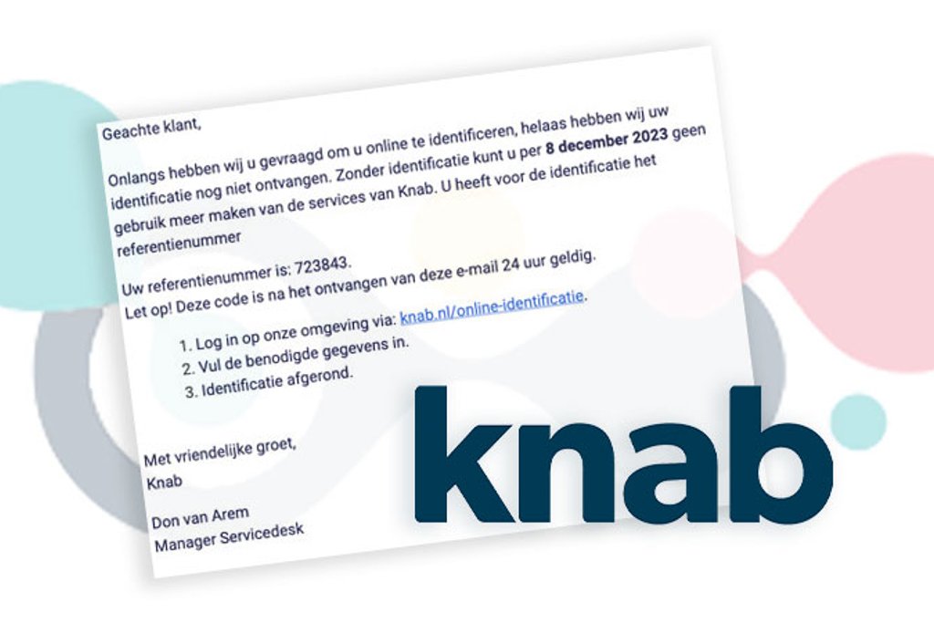 Dien jij jezelf online te identificeren bij Knab? Niet doen, dit is een valse mail
