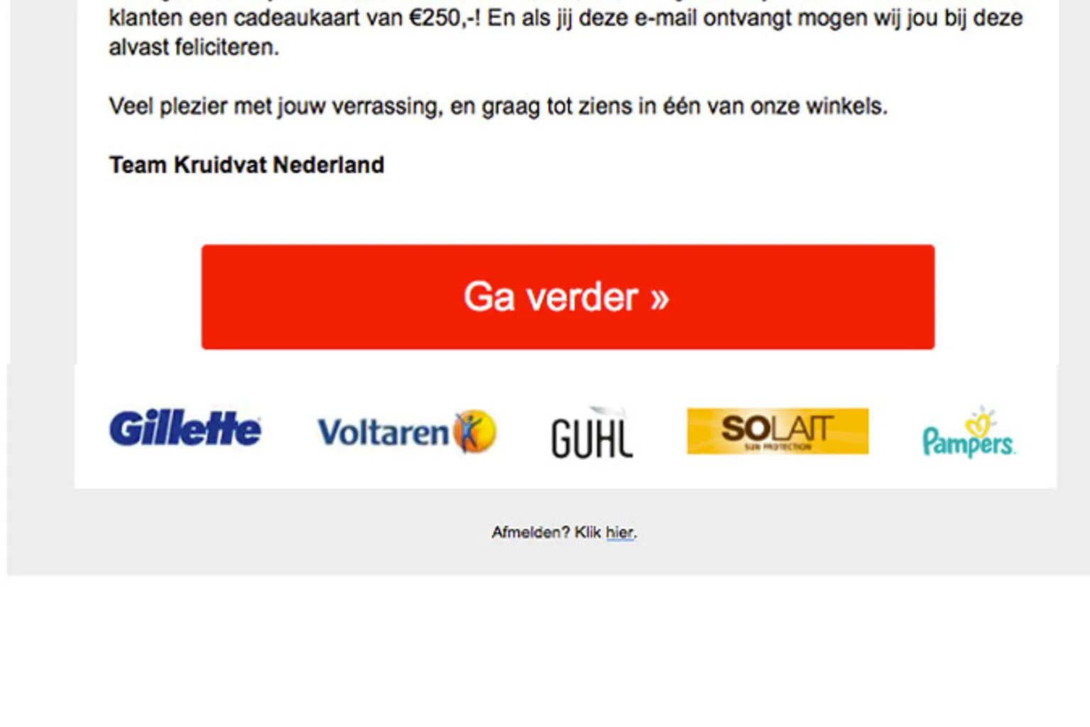 E-mail over een Kruidvat-cadeaukaart van 250 euro? Let goed op!