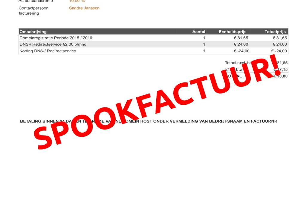 Opgelicht?! blijft meldingen ontvangen over spooknota's van NL Domein Host.