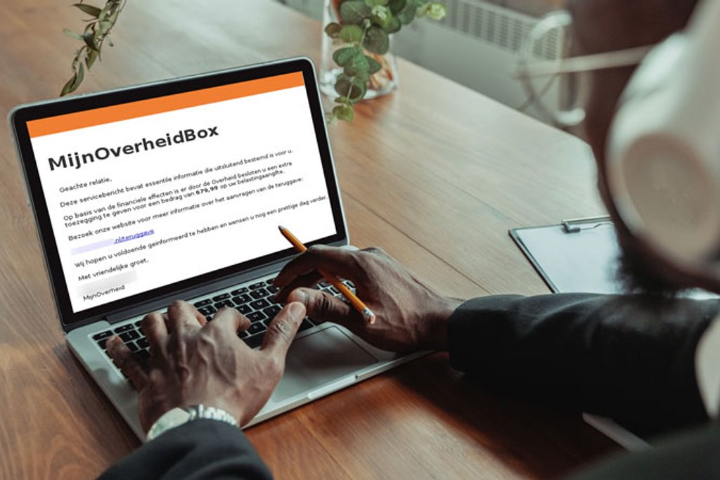 "Deze servicebericht bevat essentile informatie die uitsluitend bestemd is voor u", begint het phishingbericht. Deze zin bevat grammaticale en spelfouten. Dat mag je niet verwachten van een organisatie als de overheid. Daarnaast is het erg verdacht dat een bericht dat uitsluitend voor jou bestemd is, geen persoonlijke aanhef bevat. Bovendien heet de persoonlijke inbox van MijnOverheid 'Berichtenbox' en niet 'MijnOverheidBox'.