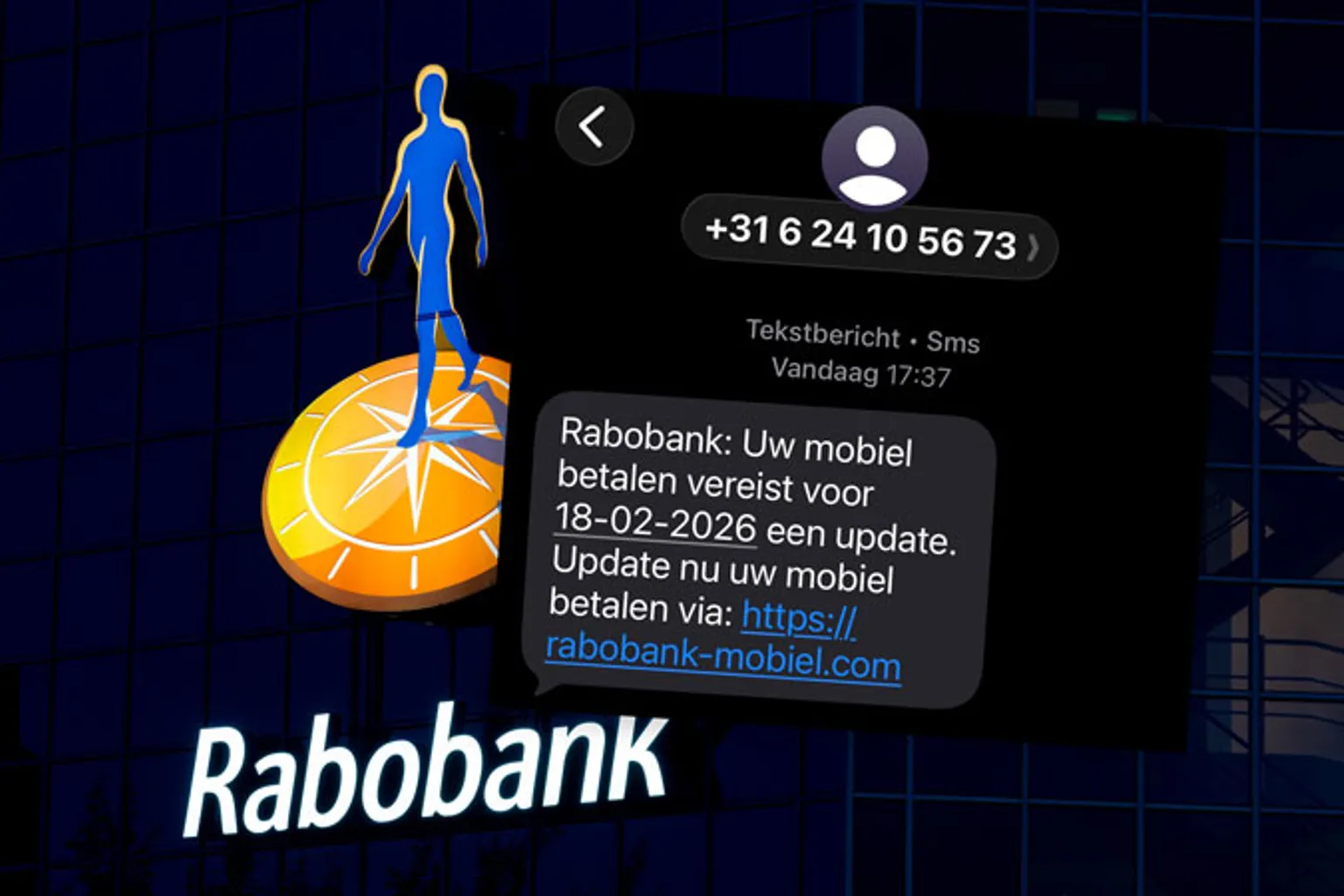 Frauduleuze Rabobank-sms van +31624105673: ‘Jouw mobiel betalen vereist een update’