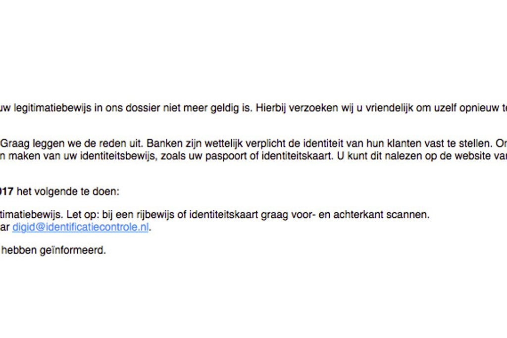 Gevaarlijke e-mail verstuurd door 'DigiD' over identificatieplicht