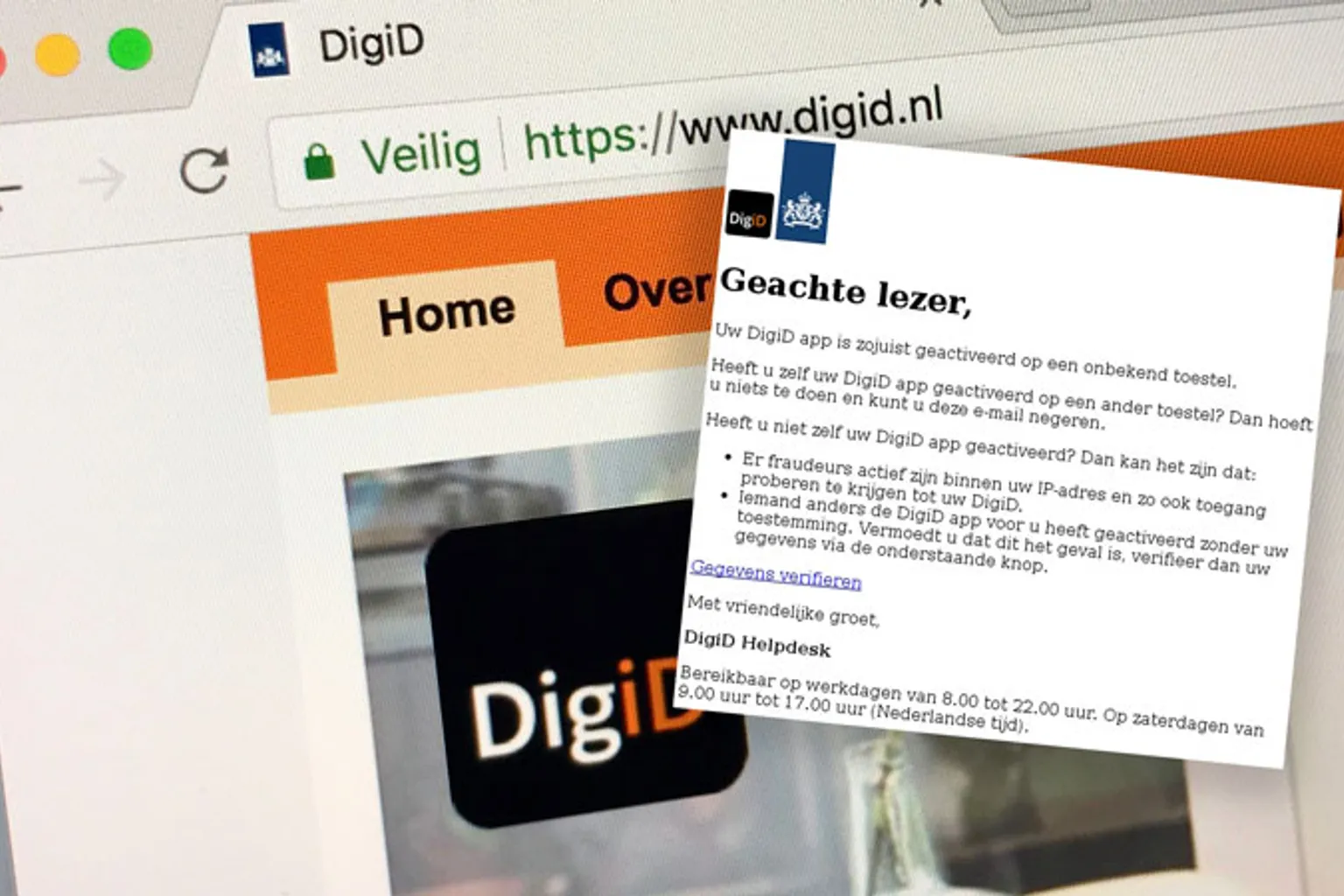 ‘Iemand wilde je DigiD-app activeren zonder jouw toestemming’, mailen oplichters namens de overheid