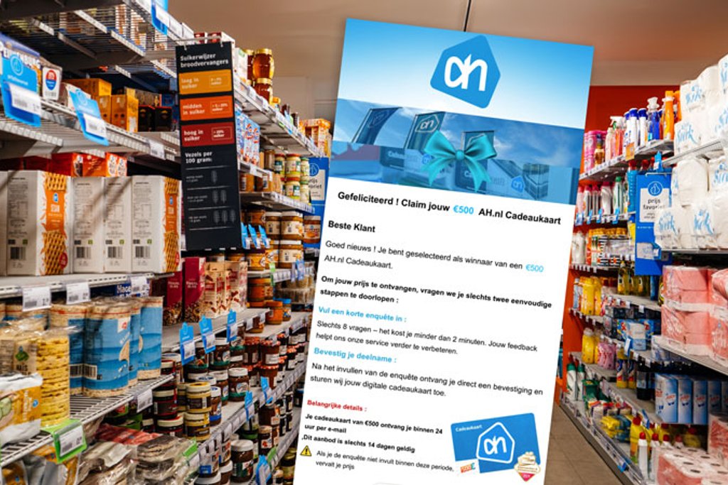 ‘Je bent de winnaar van een €500 Albert Heijn cadeaukaart!’, mailen online fraudeurs