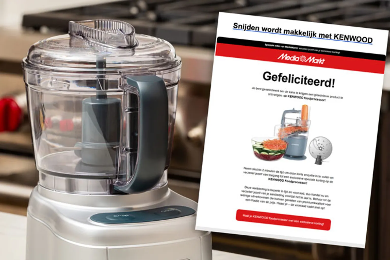 Je maakt zogenaamd kans op een ‘gloednieuwe Kenwood foodprocessor’ bij MediaMarkt