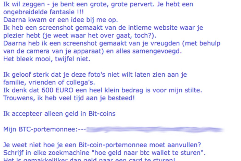Heb je zo'n mail ontvangen? De politie zei over vergelijkbare eerdere mails: 'Betaal niet en gooi de mail weg! Er zijn geen beelden van je gemaakt en je computer is niet gehackt. Wel is het handig om regelmatig een nieuw sterk wachtwoord in te stellen.'