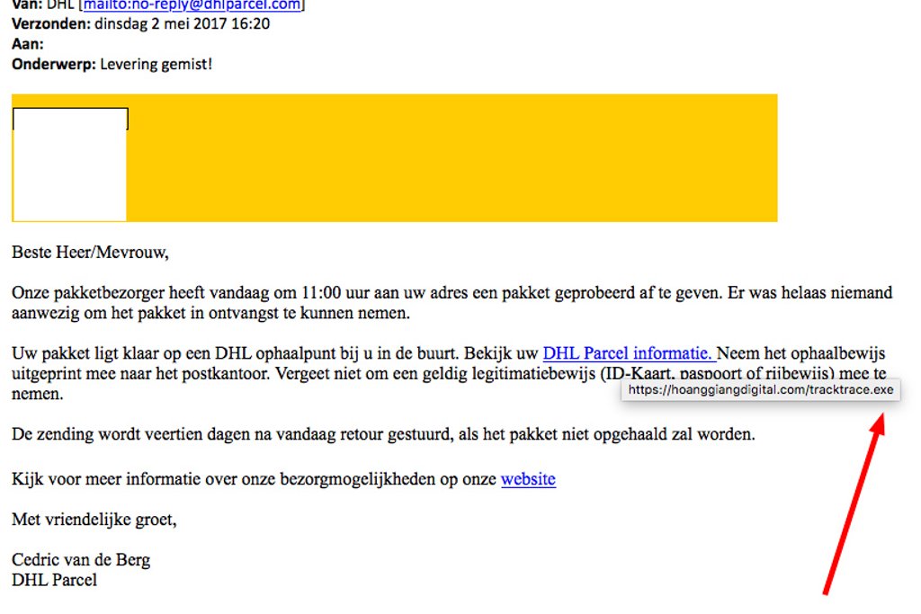 Let op! Malware in nepmail 'DHL'