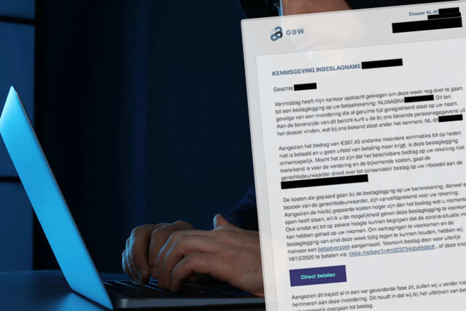 Levensechte spookfactuur van GDW Nederland Gerechtsdeurwaarders bevat talloze persoonlijke gegevens