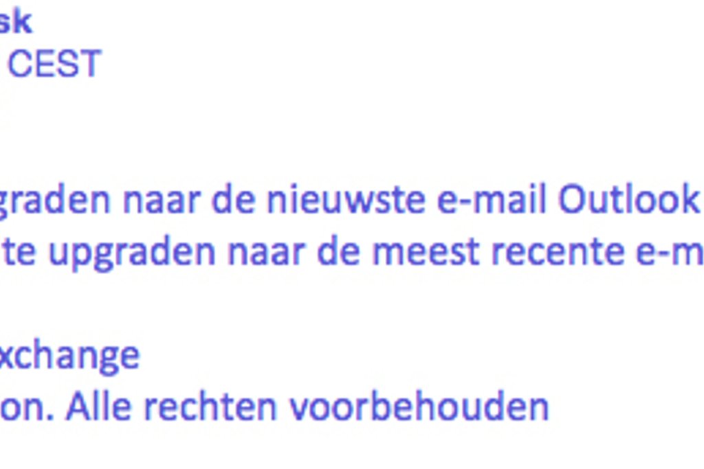 Er zijn e-mails in omloop met een link naar 'ICT Service Desk' om te upgraden naar de 'nieuwste e-mail Outlook Web Apps'. Deze mails zijn verstuurd door fraudeurs en kunnen direct de prullenbak in.