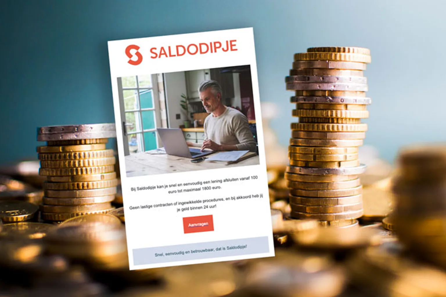 Mail namens Saldodipje over aanvraag microlening van 100 tot 1800 euro is nep