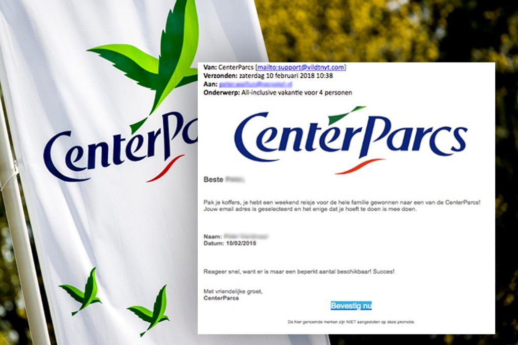 Er is een e-mail in omloop waarin staat dat je een weekend Center Parcs hebt gewonnen. Ga hier niet op in, dit is een valse winactie.