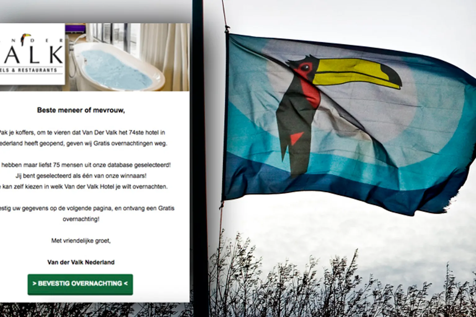 Mail over hotelovernachting bij 'Van der Valk' is een valse winactie