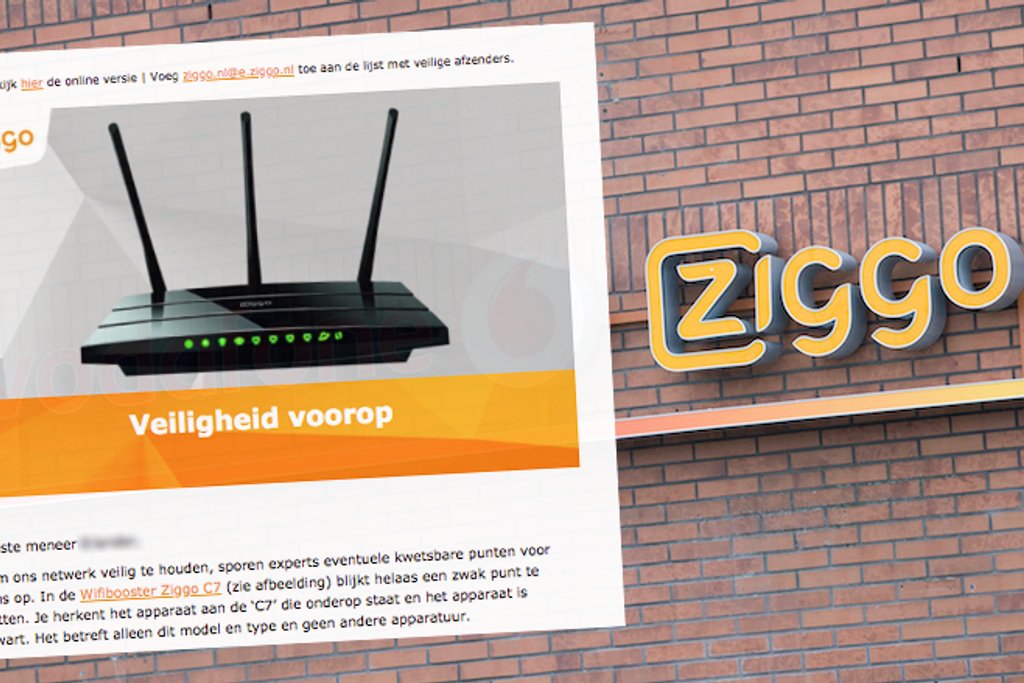 Mail van Ziggo over wachtwoord wijzigen voor Wifibooster C7 is betrouwbaar