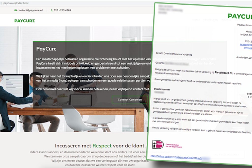 Opgelicht?! krijgt de laatste dagen meldingen over vorderingen en beslagleggingen uit naam van PayCure Incassobureau. Deze vorderingen hebben zogenaamd betrekking op openstaande schulden bij bedrijven als Piccolocard NL, Kick Off en Premiumkiosk. En ook al beschikt de afzender over jouw volledige naam en adres, toch is er voldoende reden om te stellen dat het hier om oplichting gaat.