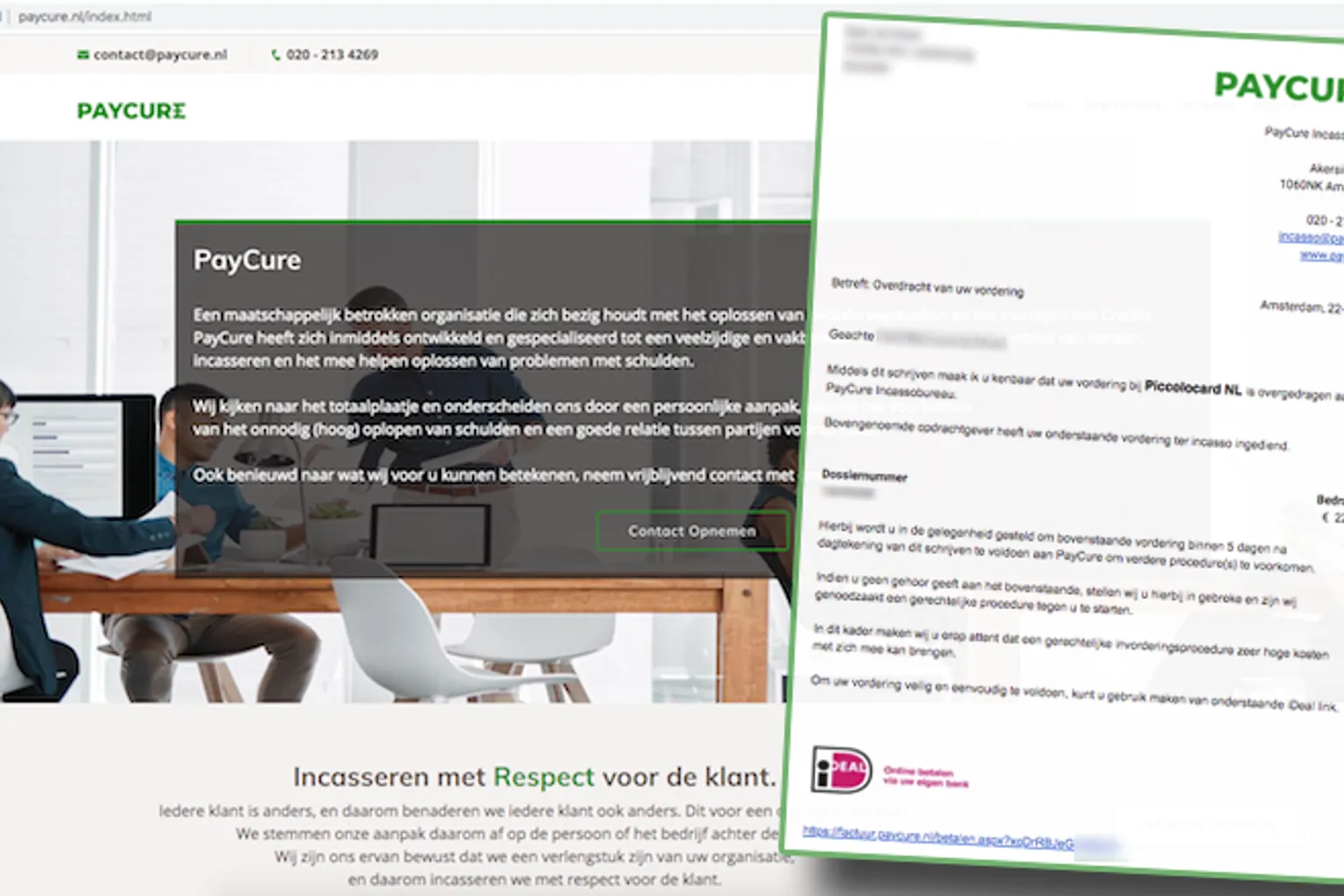 De website bevat geen KvK-nummer, het bedrijf is gevestigd in een appartement dat enkele weken geleden van eigenaar is verwisseld en de namen van de bedrijven namens wie PayCure Incassobureau stelt te handelen, werden eerder al door de Autoriteit Consument & Markt met oplichting in verband gebracht. Duidelijke zaak.