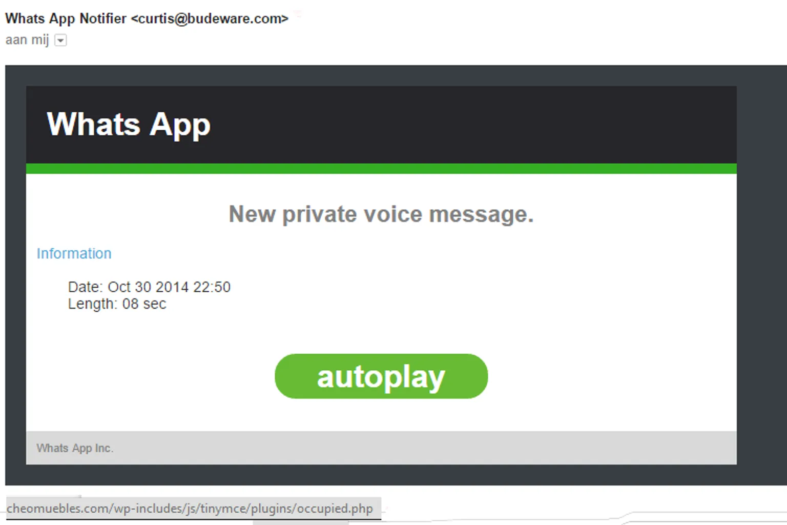 Malware e-mail WhatsApp: 'New private voice message'
