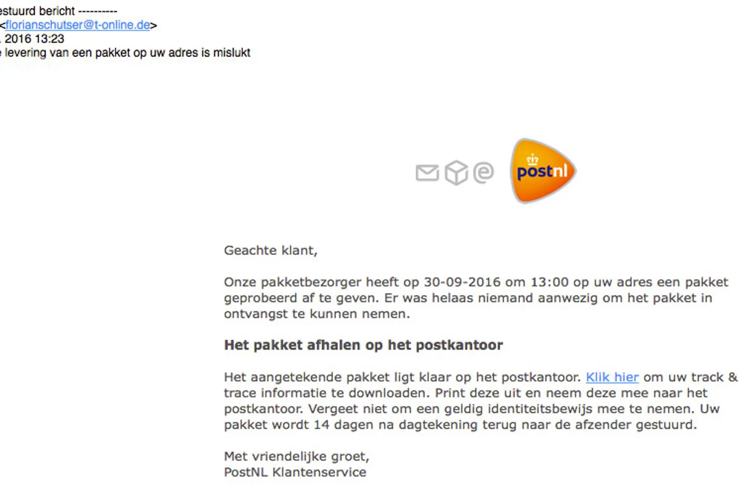 Opnieuw probeert een groep criminelen malware op je computer te installeren. Dit doen zij door middel van een e-mail uit naam van PostNL. Opgelicht?! waarschuwt daarom nogmaals voor deze truc.