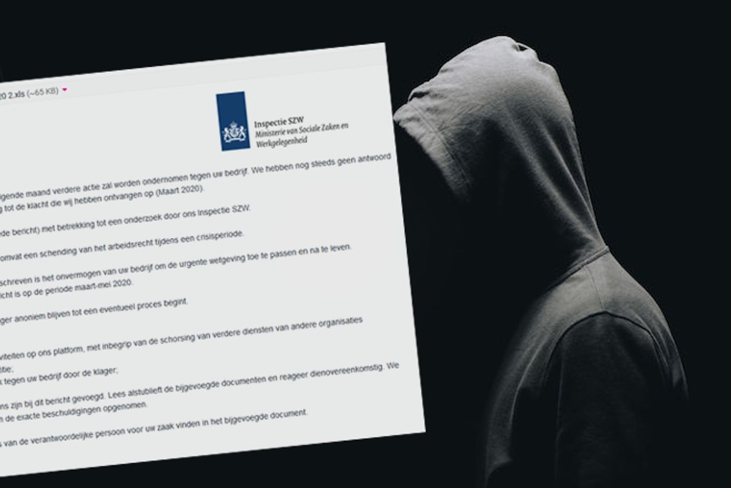 Verschillende ondernemers maken melding van dreigende mails uit naam van Inspectie SZW. Er zou een onderzoek worden gestart wegens een schending van het arbeidsrecht tijdens de coronacrisis. De mail bevat een bijlage met een samenvatting van de klachten en beschuldigingen, maar niets is minder waar: deze mail bevat schadelijke malware.