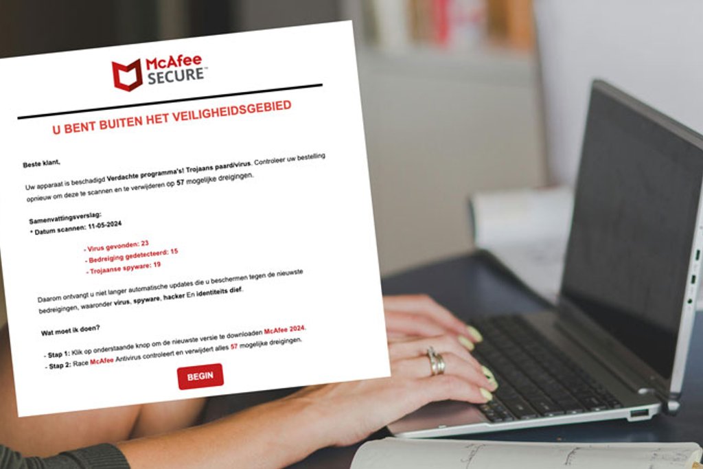 McAfee-mail over 57 mogelijke dreigingen is nep