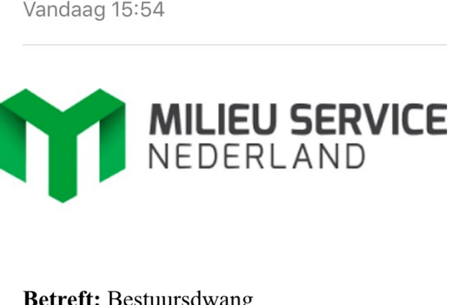 Recentelijk zijn er e-mails verstuurd die afkomstig lijken van Milieu Service Nederland. Hierin wordt aangegeven wordt dat er bestuursdwang opgelegd wordt vanwege het achterlaten van huishoudelijk afval op de openbare weg. Verwezen wordt naar Artikel 10 van de afvalstoffenverodening Nederland. In de mail wordt ook gebruik gemaakt van het logo van Milieu Service Nederland.