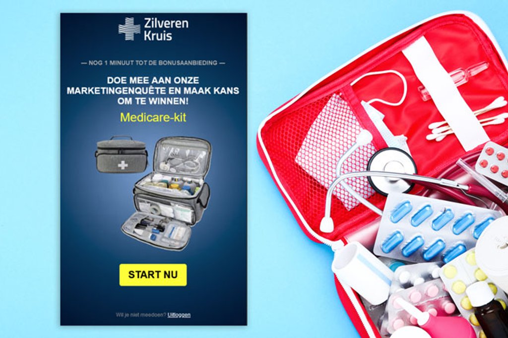 Doe mee aan de marketing enquête van Zilveren Kruis en maak zogenaamd kans op een Medicare kit. Doe nergens aan mee, want dit is een phishingbericht.