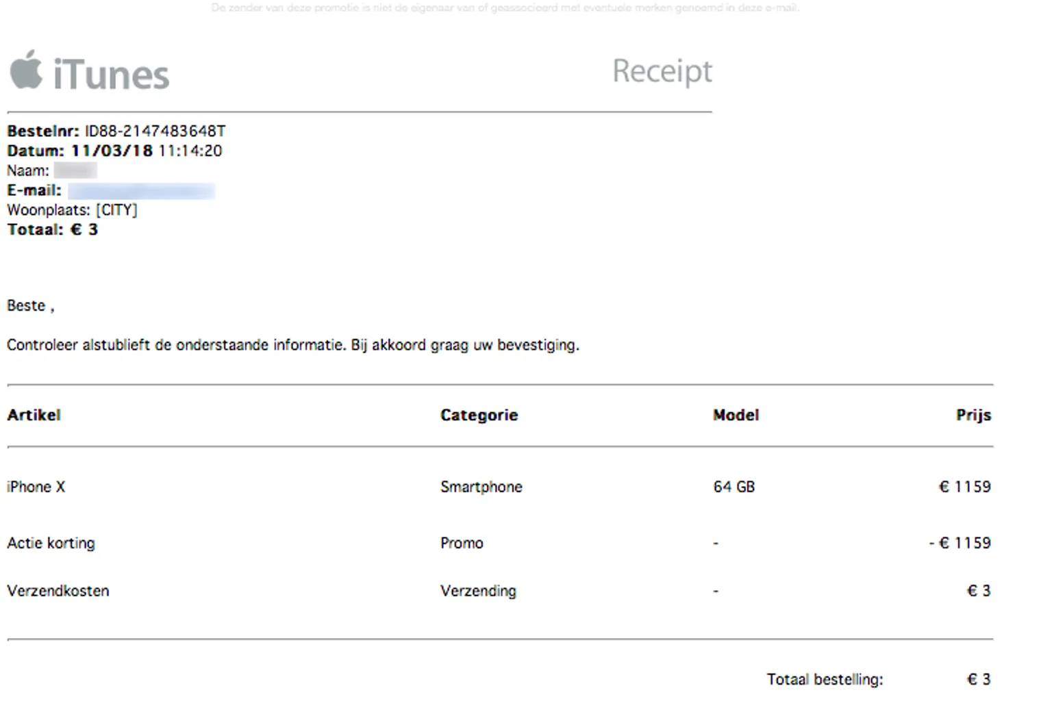 Opgelicht?! krijgt meldingen over een nepfactuur uit naam van Apple. Je hebt zogenaamd een iPhone X besteld en dankzij een kortingsactie betaal je slechts een paar euro verzendkosten. Trap er niet in! Voor je het weet zit je vast aan een duur abonnement.