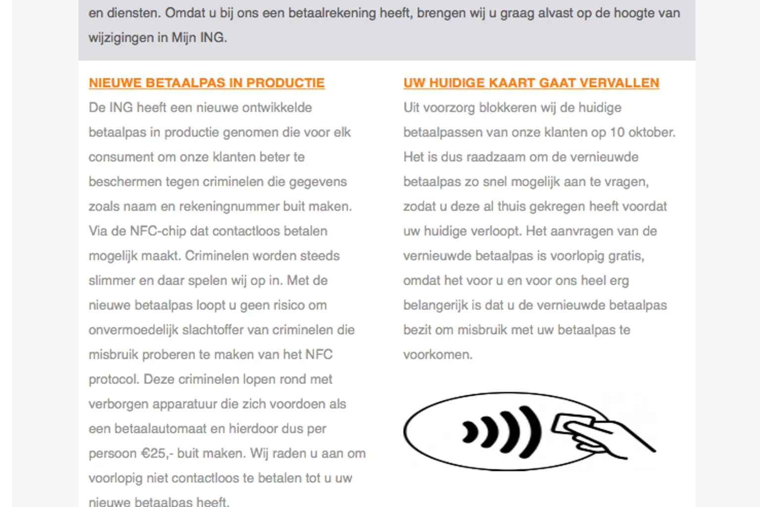Nepmail ING: nieuwe betaalpas