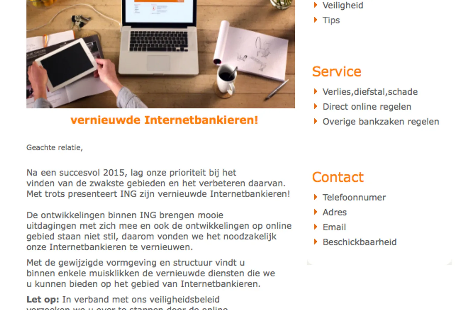 Cybercriminelen hebben geprobeerd een nieuwsbrief van ING na te maken. Daarin staat dat internetbankieren wordt vernieuwd.