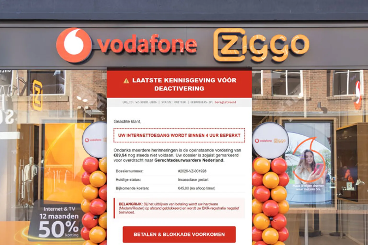 Nepmail VodafoneZiggo: ‘Jouw modem wordt om 23:00 uur gedeactiveerd’