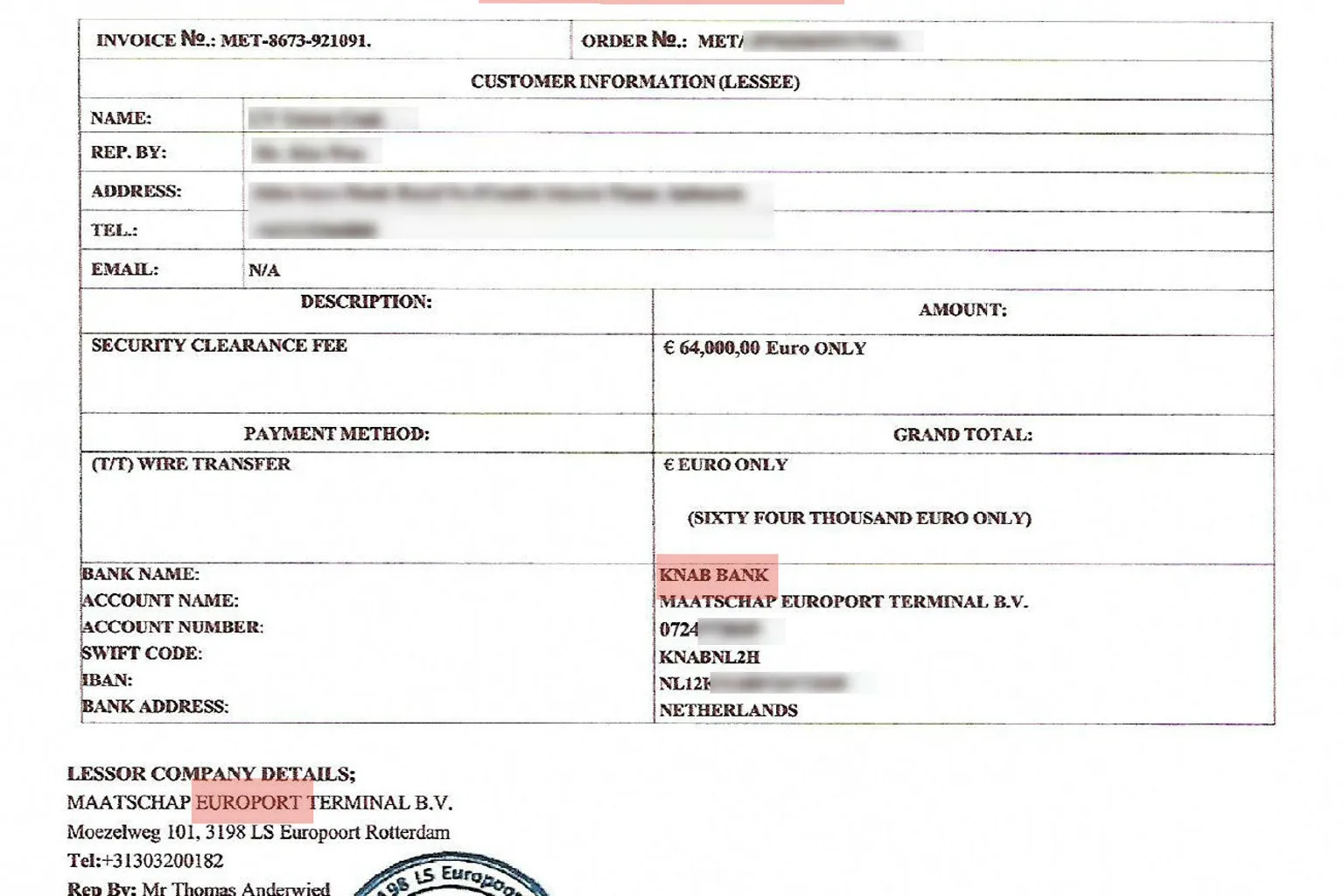 De Rotterdamse Maatschap Europoort Terminal heeft al enige tijd last van oplichters die handelen onder dezelfde naam en gegevens. Let op: het echte oliebedrijf uit het havengebied heeft geen website.