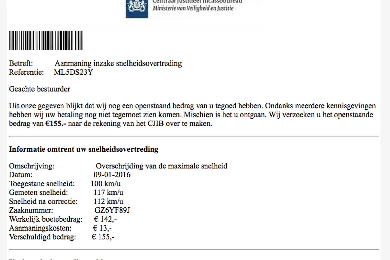 Op het moment zijn er weer valse aanmaningen in omloop, zogenaamd van het Centraal Justitieel Incassobureau (CJIB), waarin je wordt verzocht een boete via 3V te betalen.
