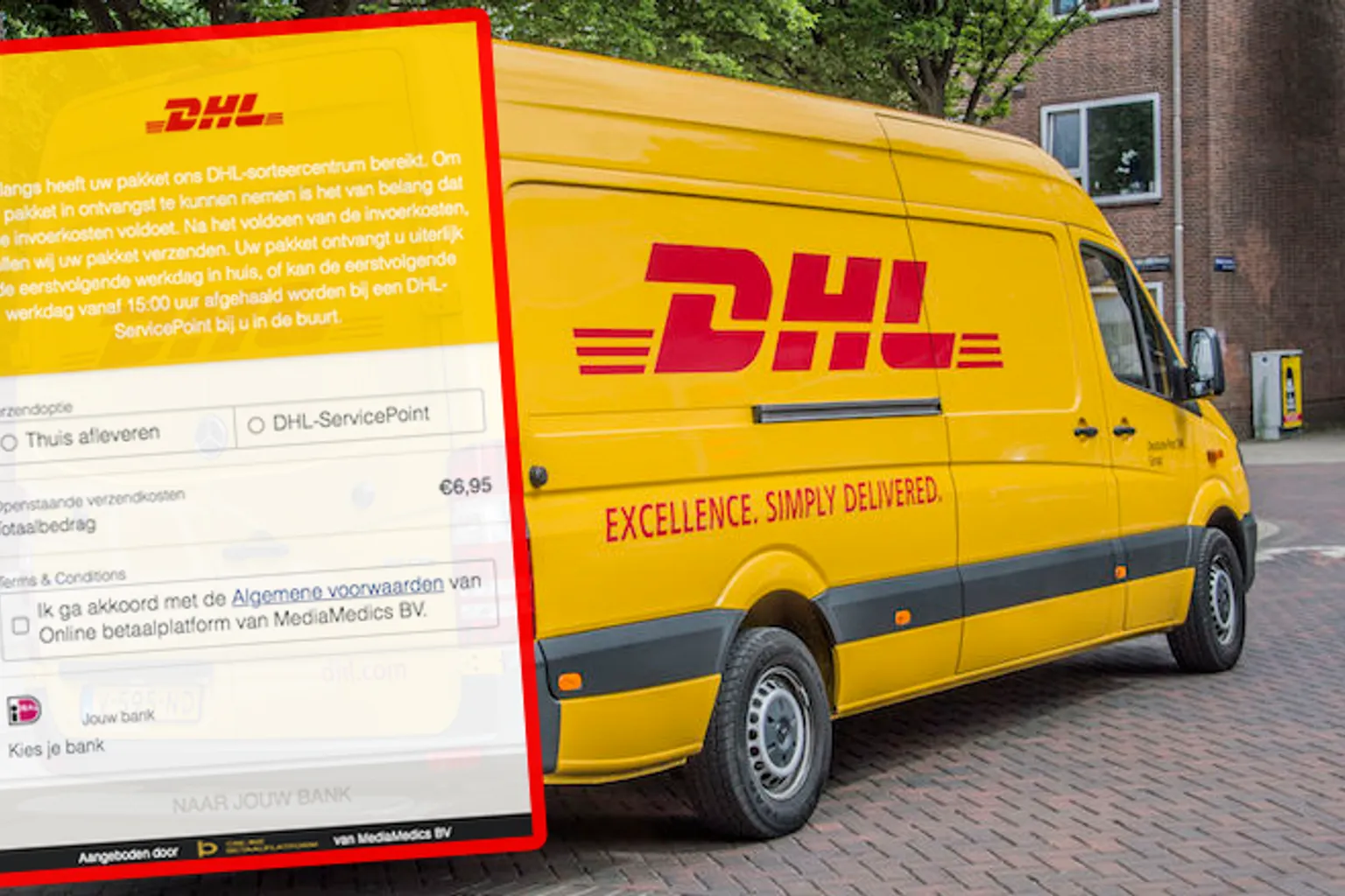 Uit naam van koeriersdienst DHL worden sms-berichten verstuurd door oplichters over een pakket dat klaar ligt in het sorteercentrum. Je moet de 'verzendkosten' nog even betalen, en dat is weer de opmaat naar phishing en het leegtrekken van jouw bankrekening.