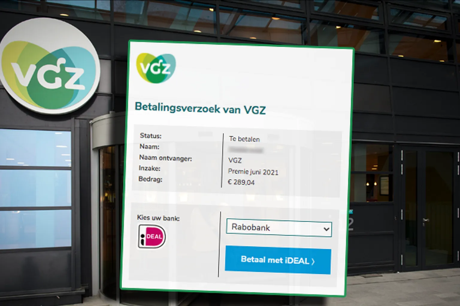 Overtuigende spookfactuur namens zorgverzekeraar VGZ: 'Uw premiebetaling voor juni 2021 wordt verwacht'