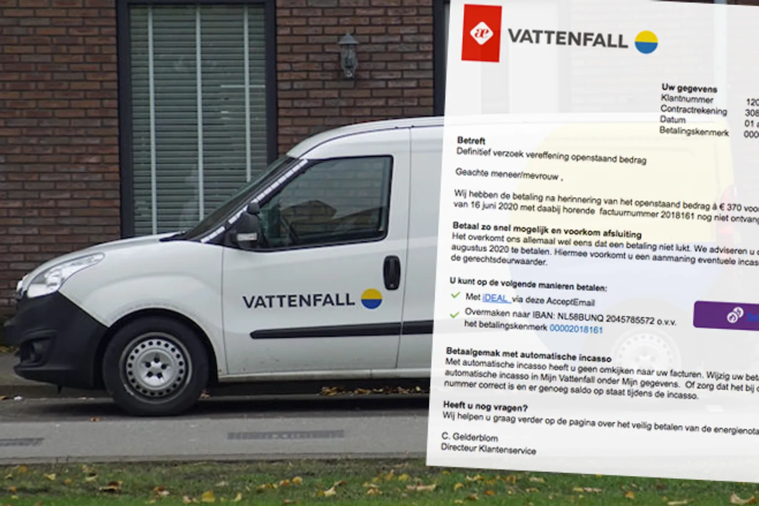 Voorbeeld van de spookfactuur van 'Vattenfall'