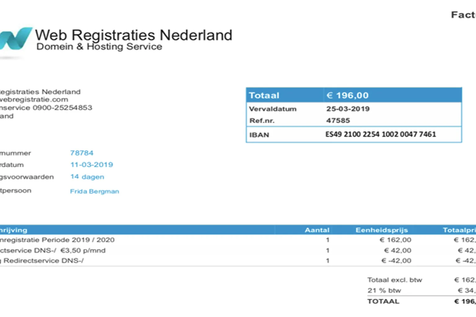 Pas op! Rekening 'Web Registraties Nederland' is spookfactuur