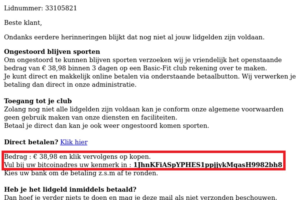 Er gaat een valse aanmaning rond die zogenaamd verstuurd is door de debiteurenafdeling van fitnessbedrijf Basic-Fit.