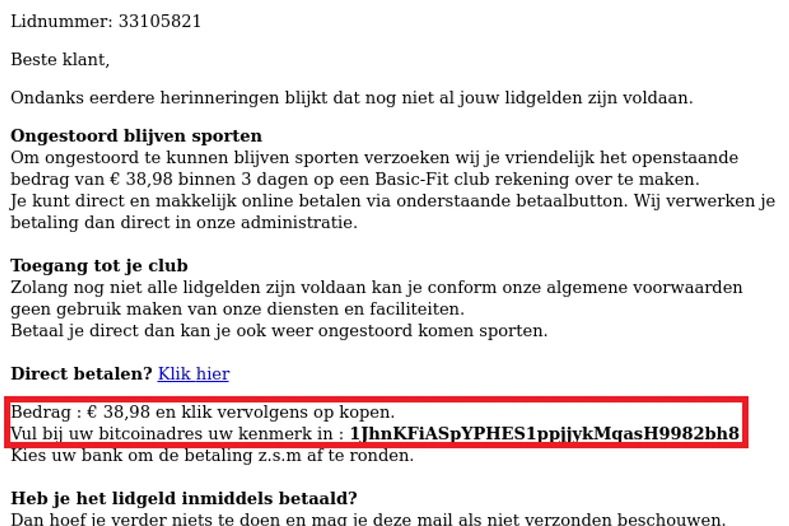 Negeer deze mail, hij is niet daadwerkelijk door Basic-Fit verstuurd. Heb je vragen over een openstaande schuld bij het bedrijf? Neem dan direct contact met ze op.