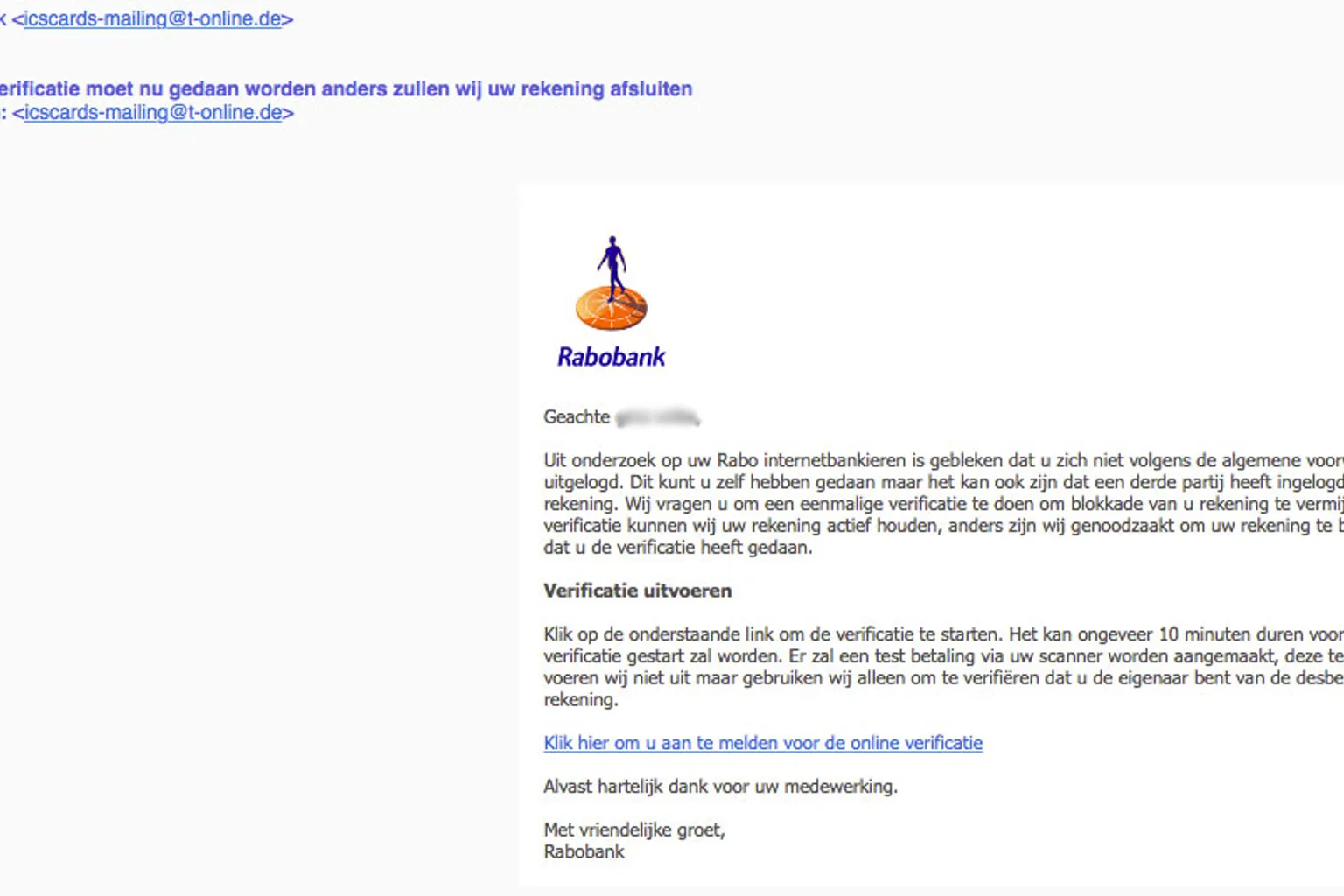 Pas op voor gepersonaliseerde phishing e-mail 'Rabobank'