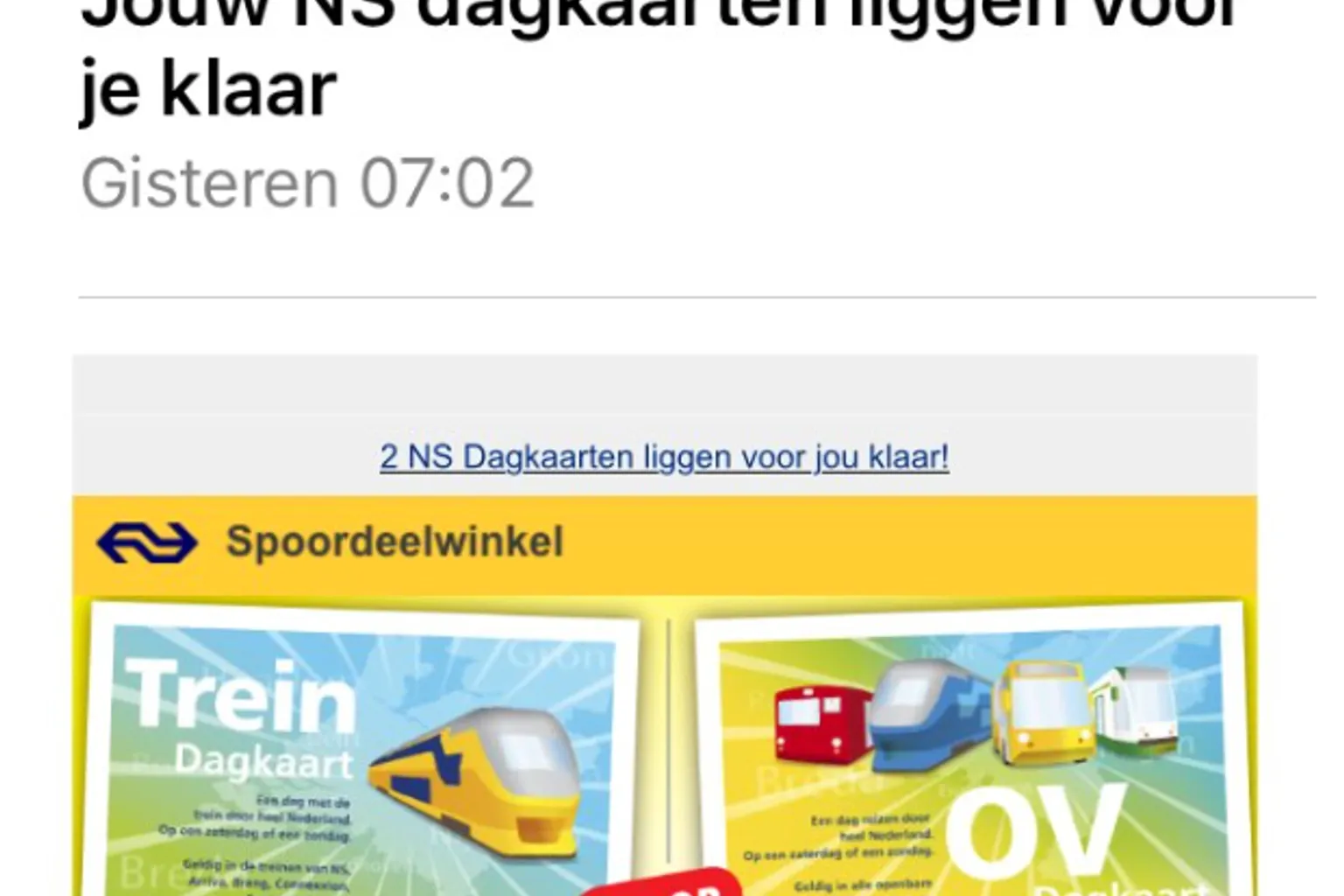 Deze mails over dagkaarten van de NS zijn hetzelfde als andere mails over waardebonnen voor bijvoorbeeld Jumbo of de Mediamarkt. Vaak zit je na het invullen van je gegevens vast aan een sms-abonnement of moet je bellen naar een telefoonnummer met een hoog beltarief. Bovendien worden je gegevens doorgespeeld naar andere commerciële partijen.