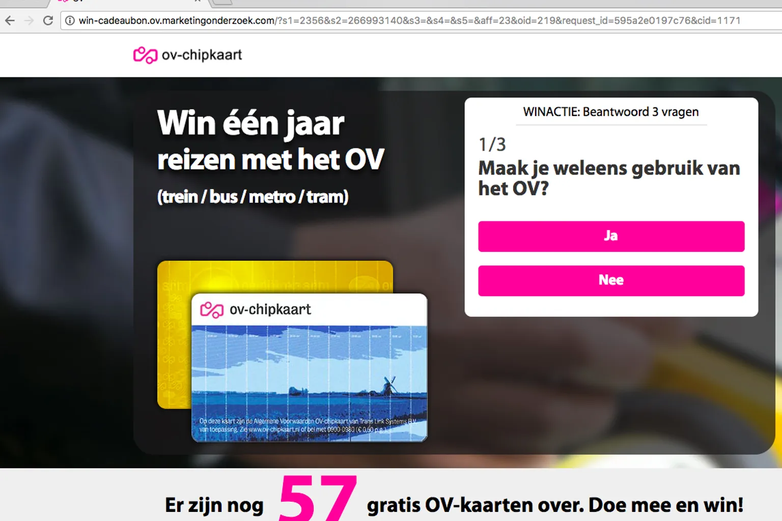 Let goed op als je een e-mail ontvangt waarin staat dat je kans maakt op gratis OV-jaarkaart. Op het eerste gezicht lijkt het bericht afkomstig van de klantenservice van 'OV-chipkaart', maar dit is niet waar. De werkelijke afzender is een bedrijf dat uit is op jouw gegevens.
