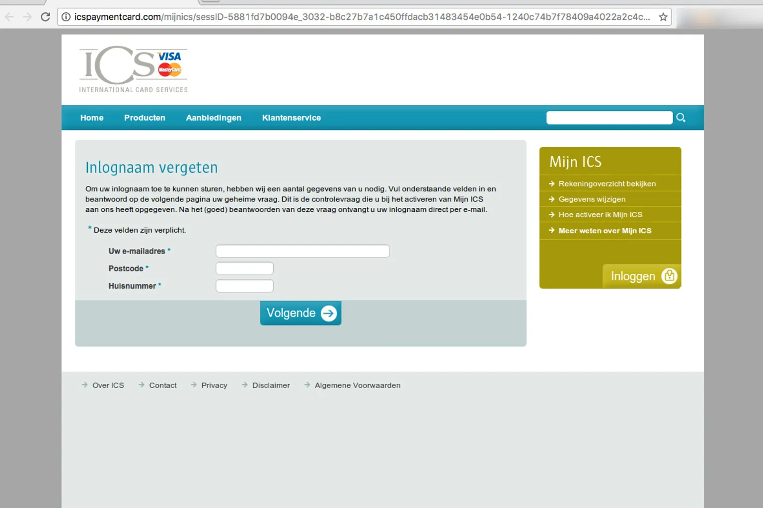 Klik niet op de link. Je komt terecht op een nagemaakte inlogpagina, die sprekend lijkt op de echte website van ICS. De gegevens die je daar invult komen echter terecht bij criminelen. Zij krijgen zo toegang tot jouw account en kunnen je creditcard vervolgens plunderen.