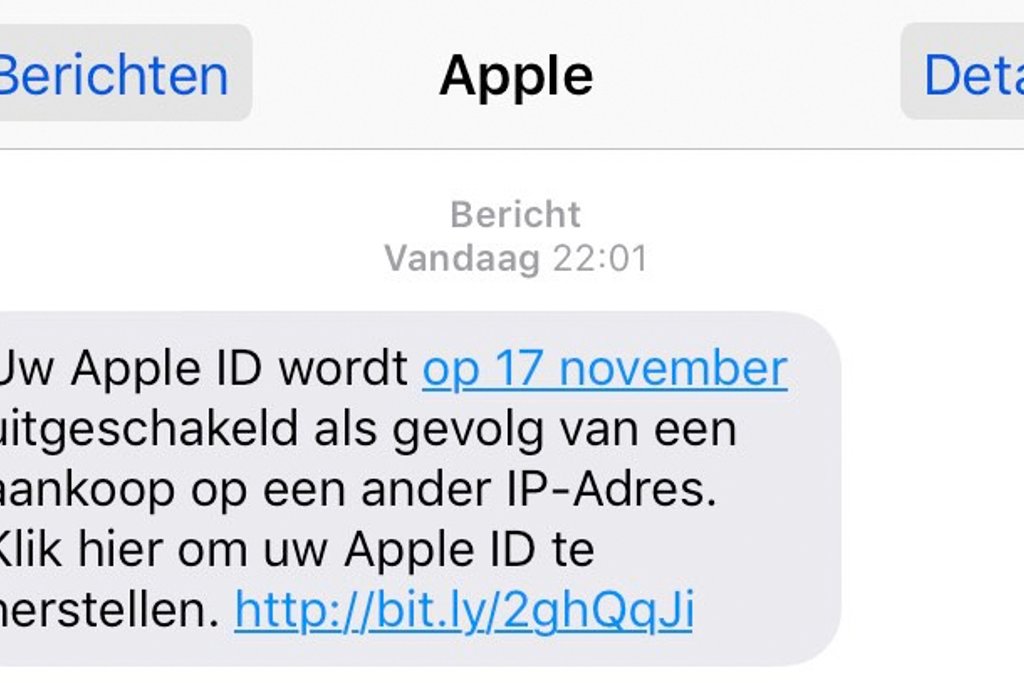 Ontvang je een sms van 'Apple', waarin staat dat je Apple ID wordt uitgeschakeld, let dan op! Deze sms is niet afkomstig van het elektronicabedrijf, maar van oplichters die uit zijn op je inloggegevens.