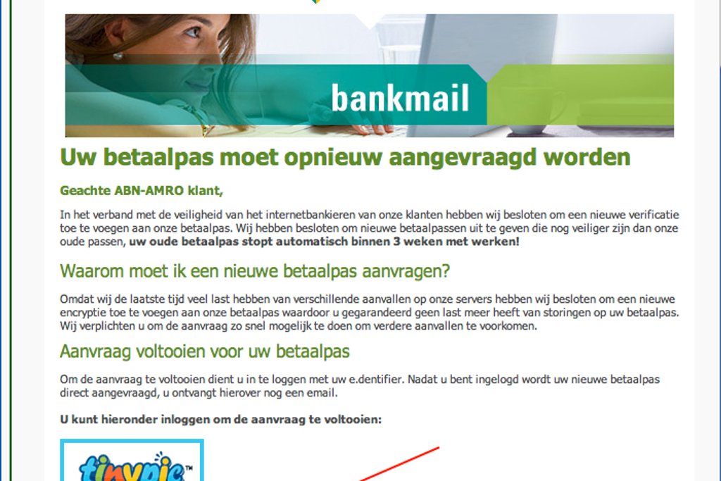 Phishing mail: 'ABN AMRO aanvraag nieuwe bankpas'